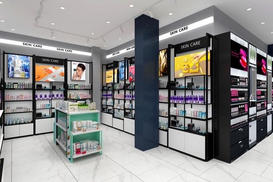 | Highlight | Durable Metal Cosmetic Display Shelves,Customized Cosmetic Display Shelves,Cosmetic Display Shelves With Cab Lightbox |